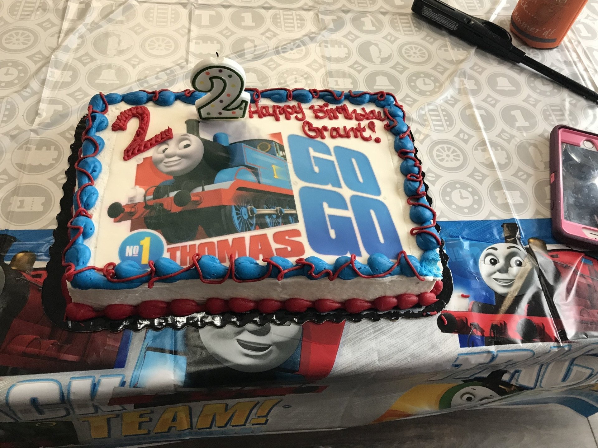 We celebrated on Grant's actual birthday with a train ride at the mall and some leftover cake!