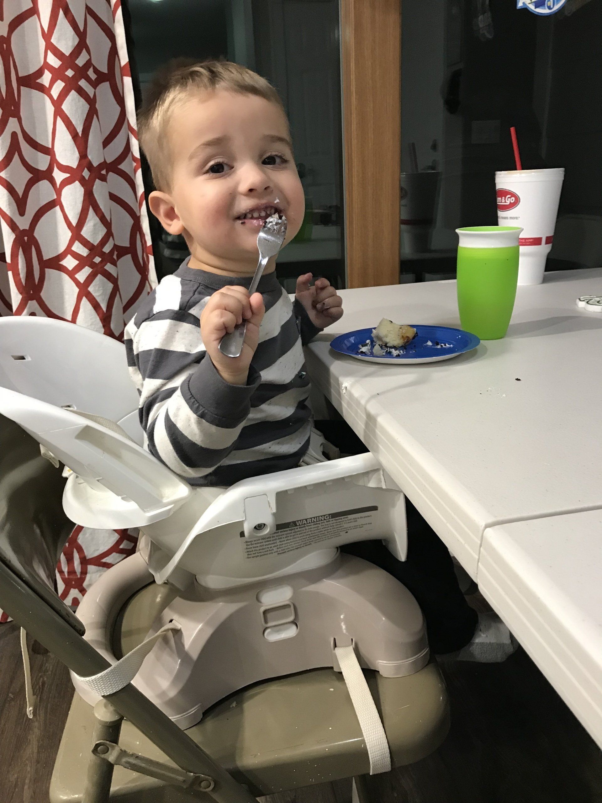 Grant has had a little bit of a transition with Blake. He loves his brother in short spurts. Because of the addition of Blake to our family, Grant has been acting out at daycare. We have spoken with the teachers and we know it is due to his new addition to our family. We are just adding more one on one time with him and lots of love and snuggles! During one of his moments of rebellion at daycare, Grant started a food fight! While we don't think his behavior is appropriate, we thought this was hilarious!