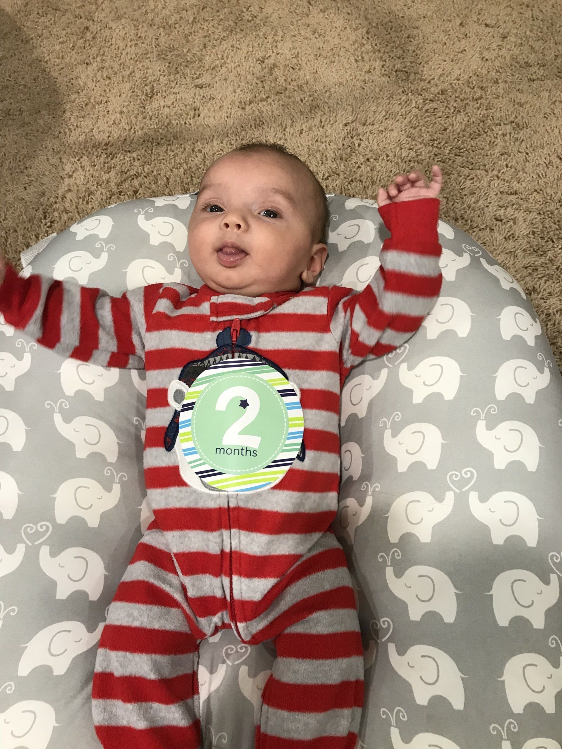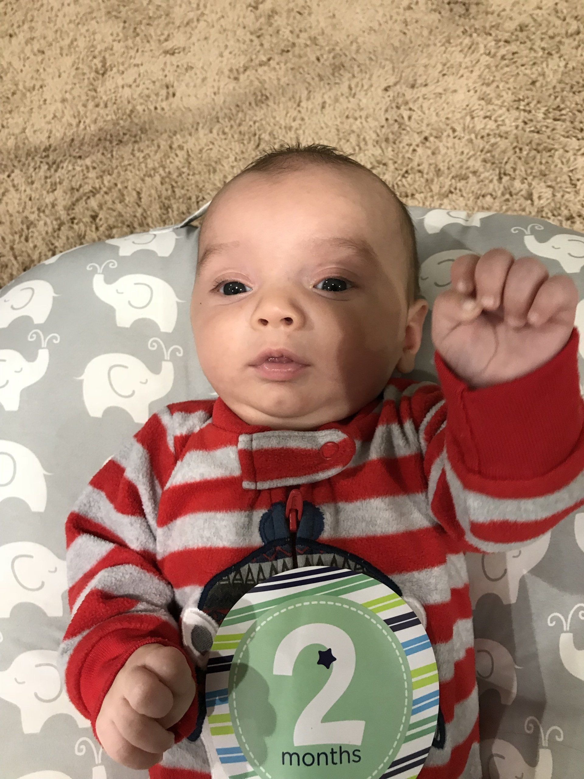 At Blakes 2 month appointment he was 11 pounds 5 ounces, 23 inches in height and head circumference of 39 centimeters. It was an eventful month and were hoping for less crying from us all to come!