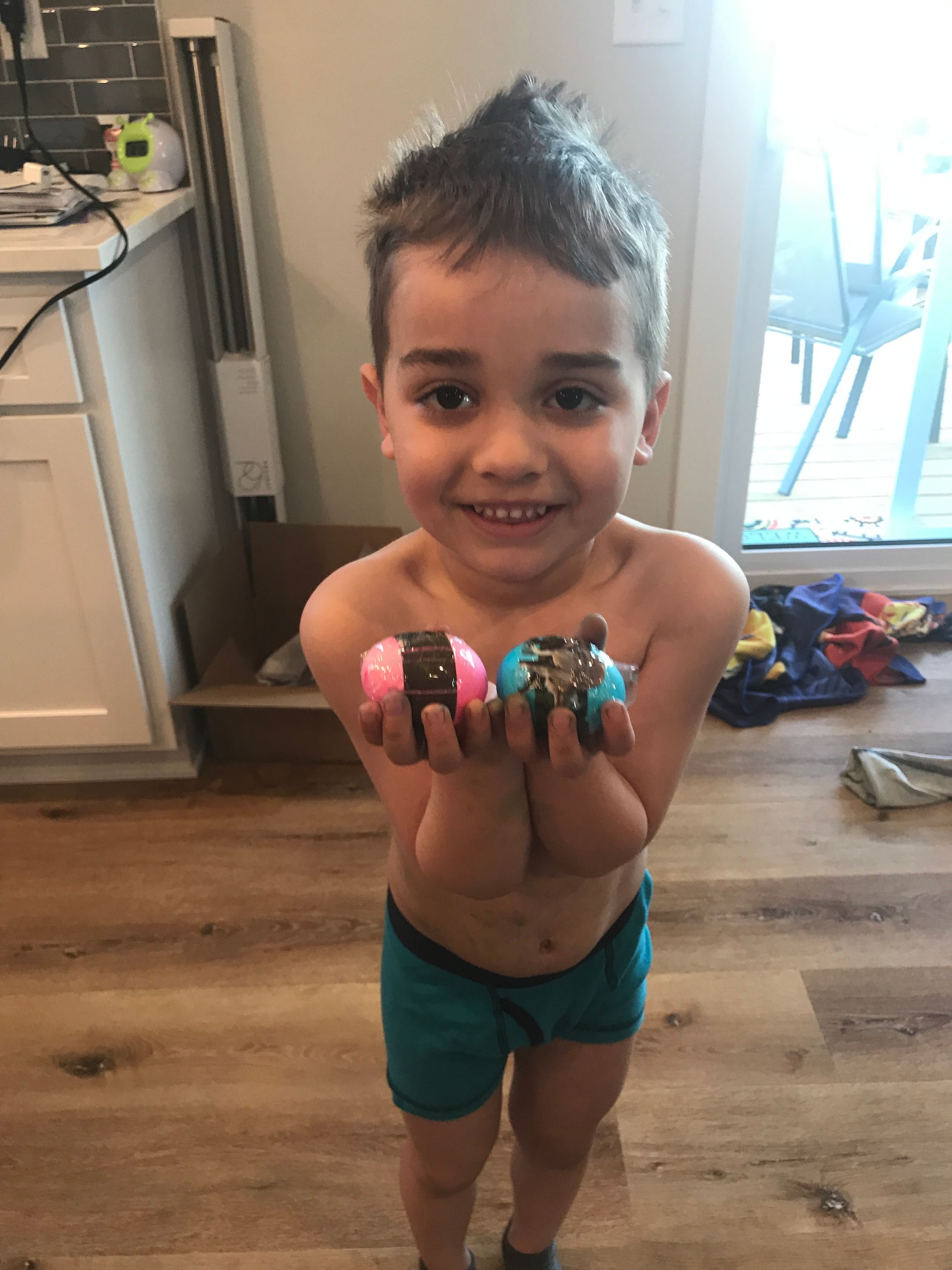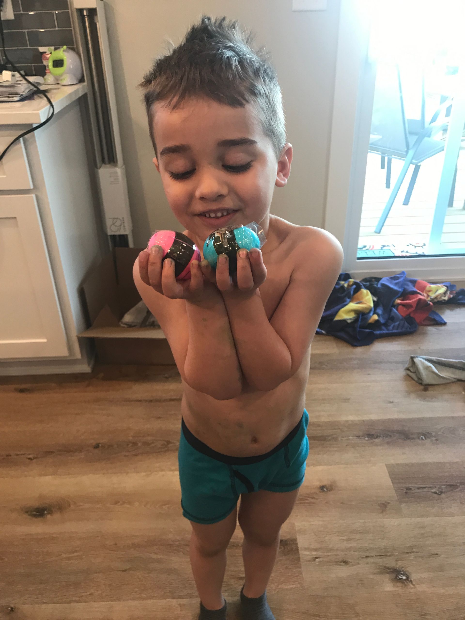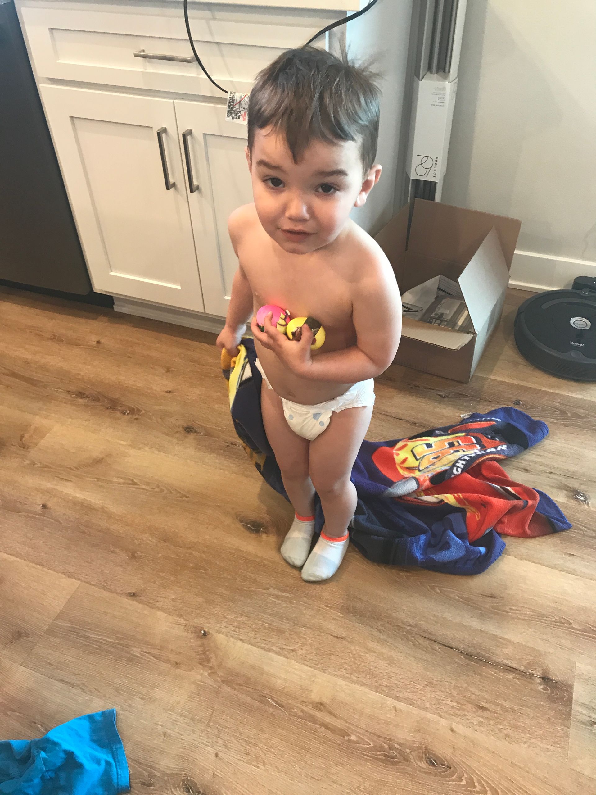 Grant got some new shoes and they are fast! He had to try them out right when he got home and couldn't wait to show Daddy and Blake how fast he was.