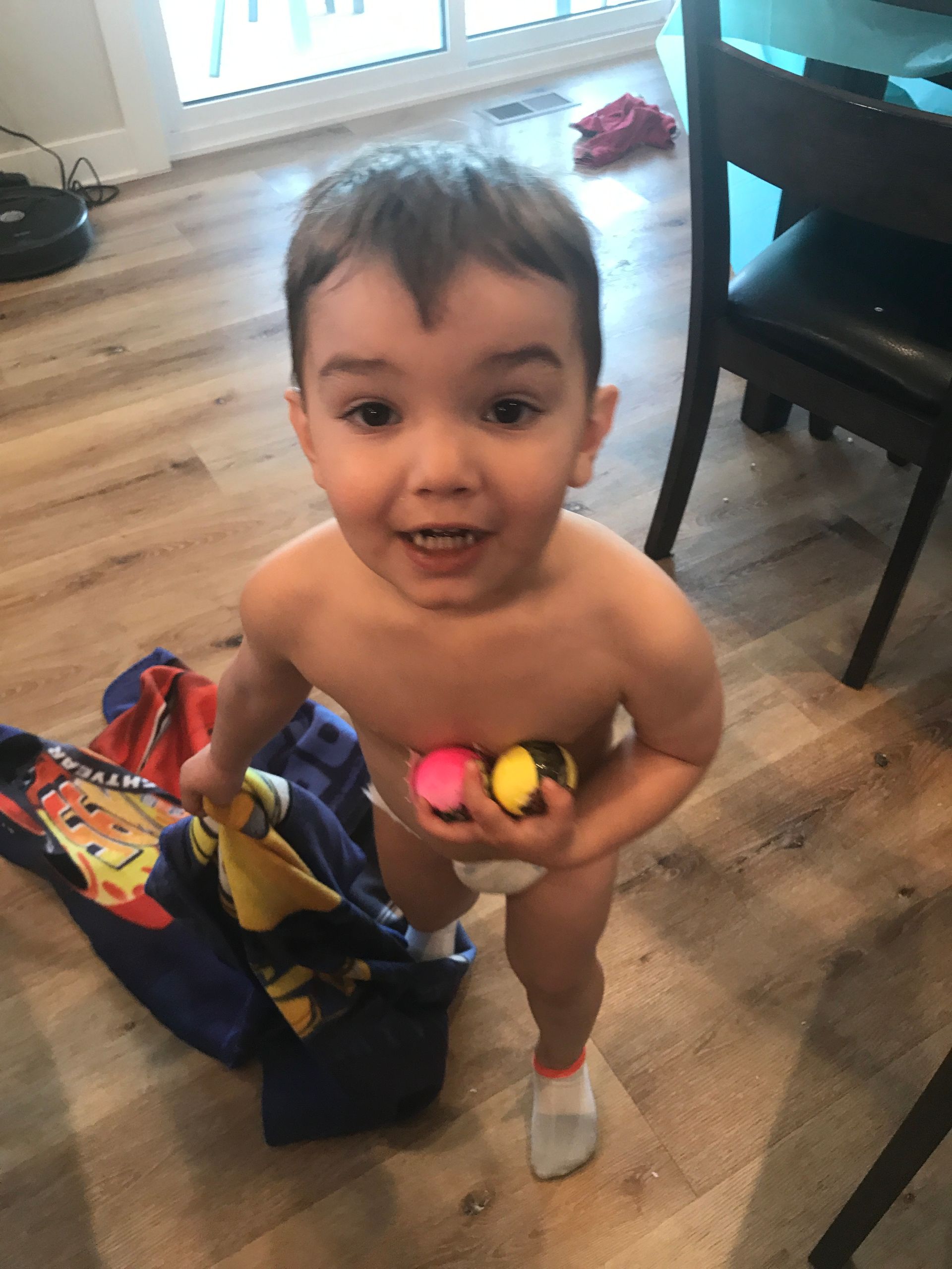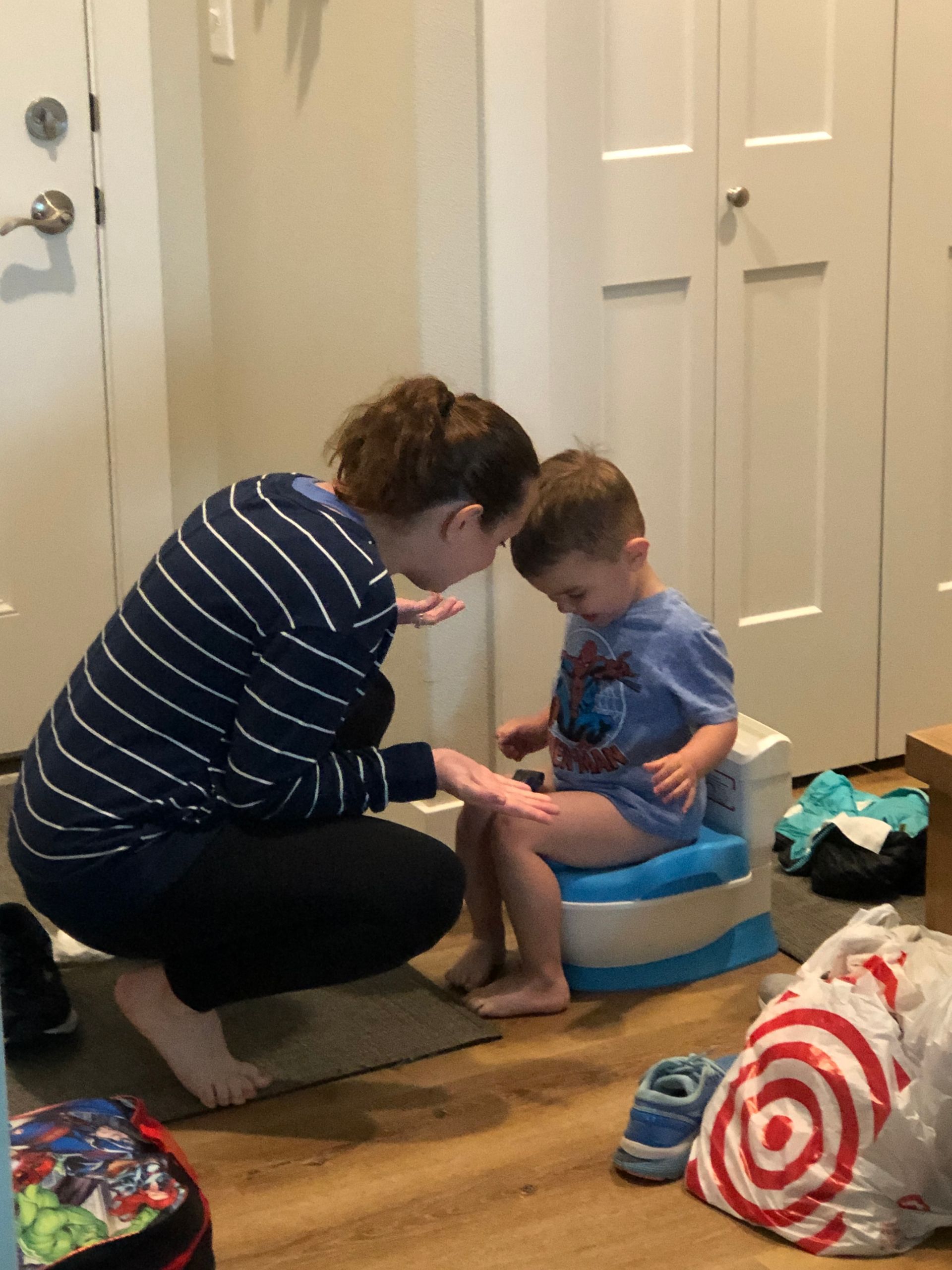 We tried to potty train Blake before the baby got here but we were unsuccessful. He is a master at holding his pee and will go all day without going until we put the pullup on for nap or bedtime. Plus, so many kids regress after a new baby is born so we will just try again once the baby is here!