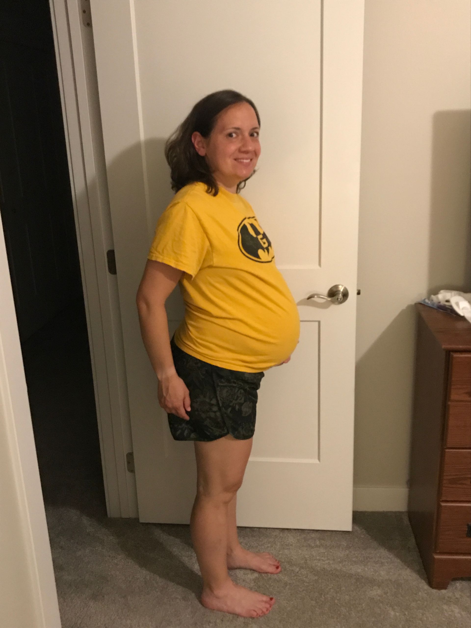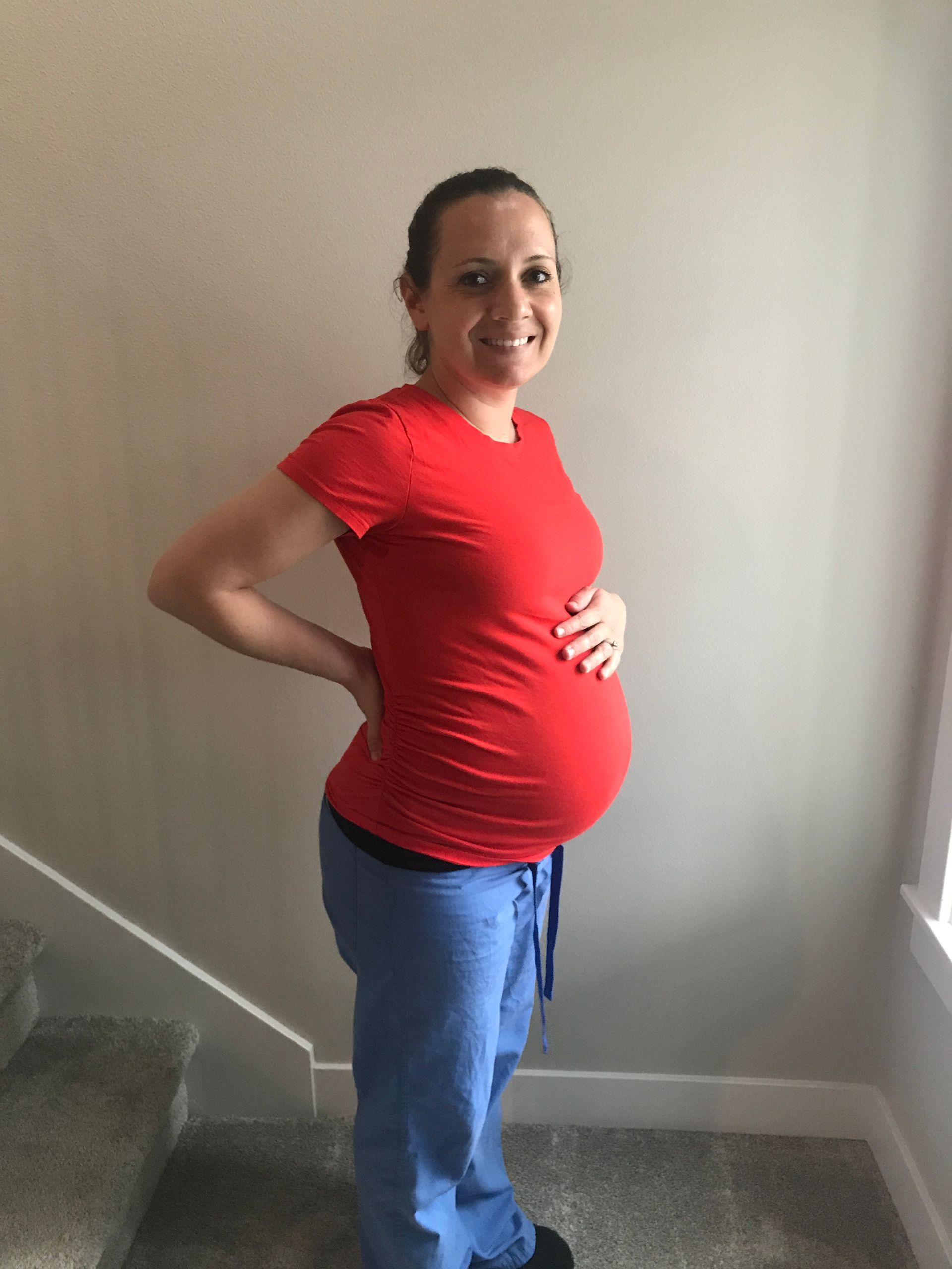 The bump is BIG! I do not know how I can get much bigger the next 2 months. Baby girl is low too. She is hurting my back and giving me back pain which I didn't have with the boys.