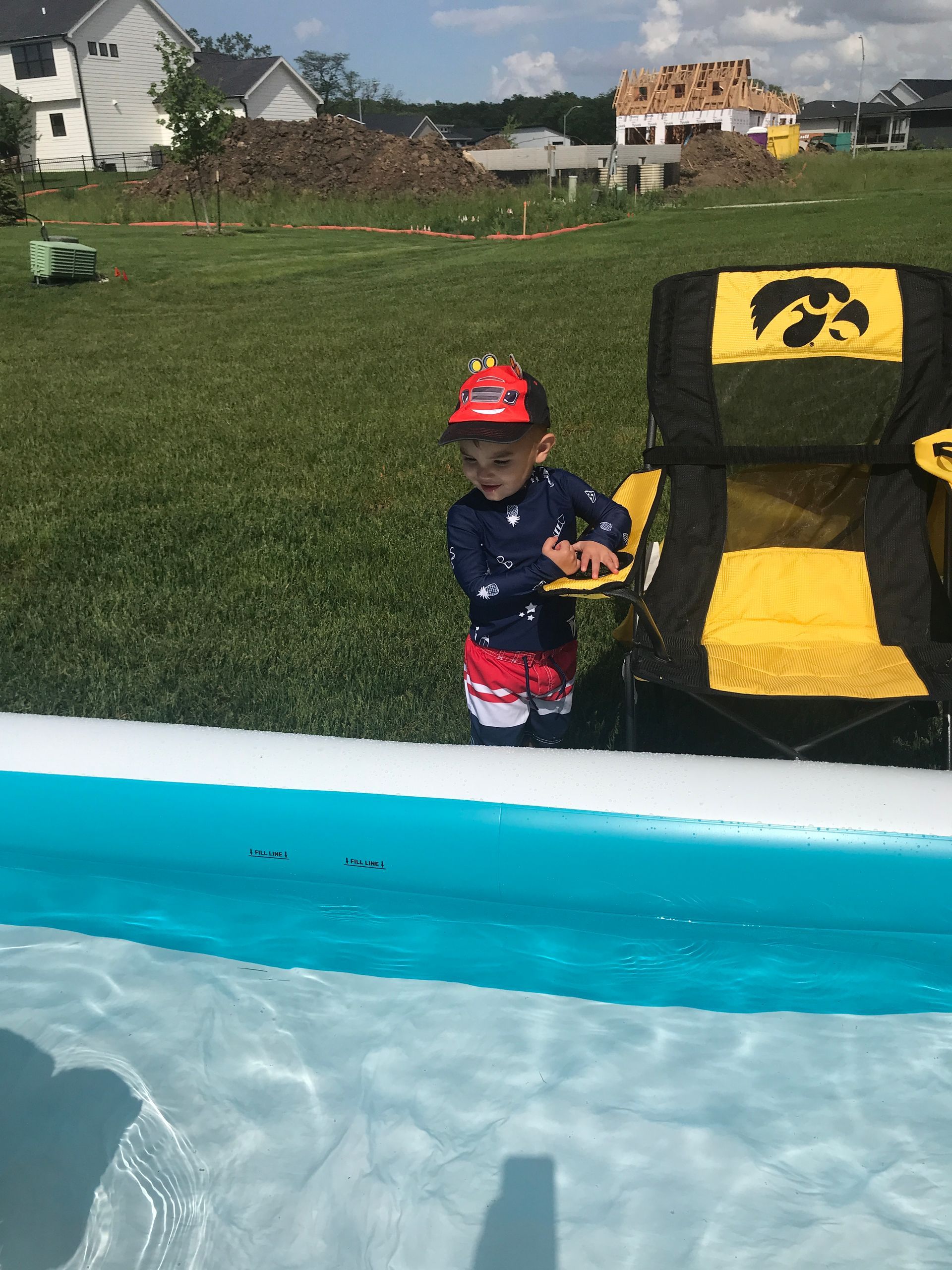 We got a swimming pool for the boys this summer. Grant liked it but Blake didn't like the cold water. It takes a lot of water to fill it up. It was hot! Blake jerked and then fell over and I took him inside and found out he had an 103 fever! I don't know what that jerk was about but that is the same thing he did at daycare a year or so ago.