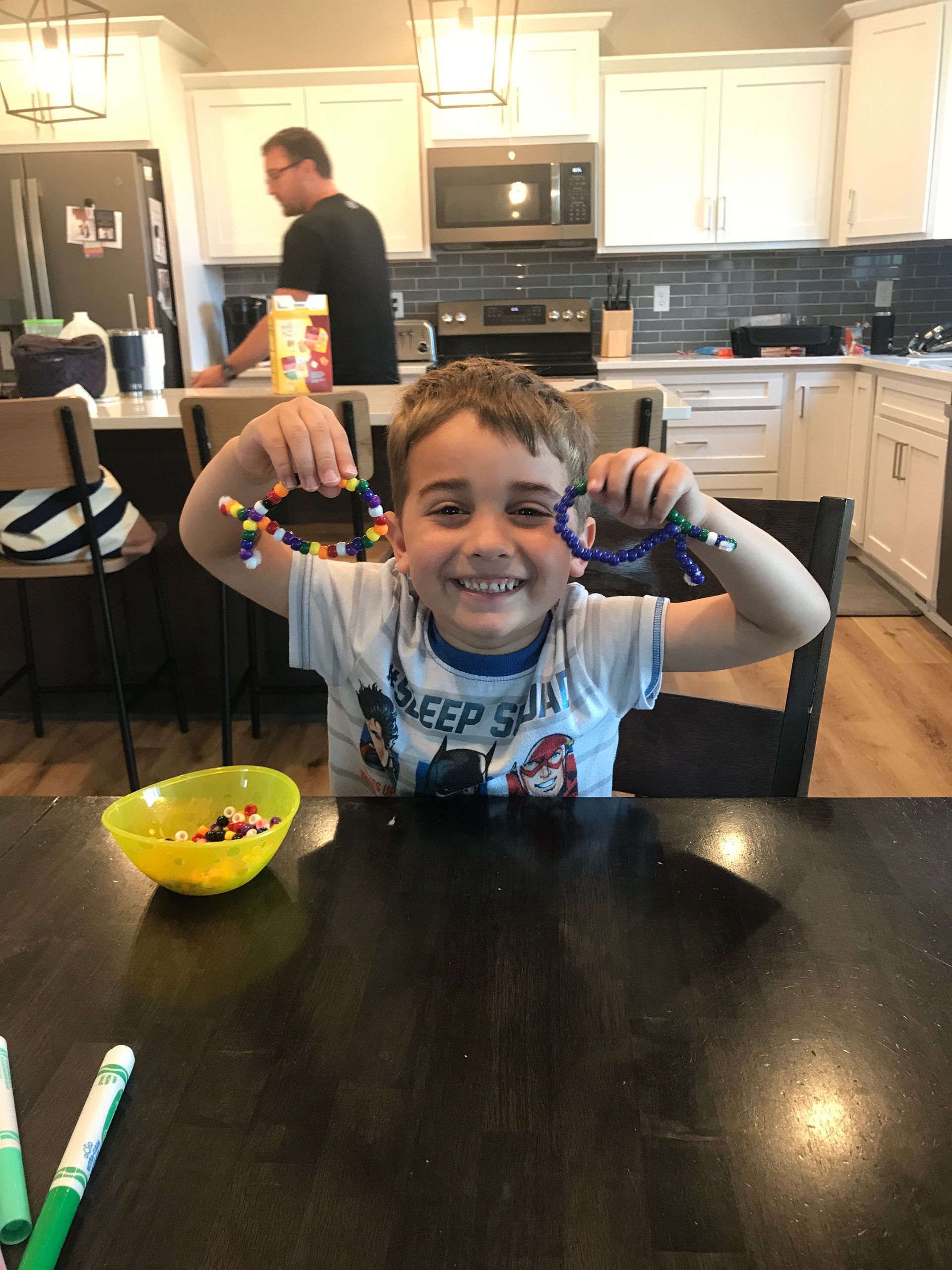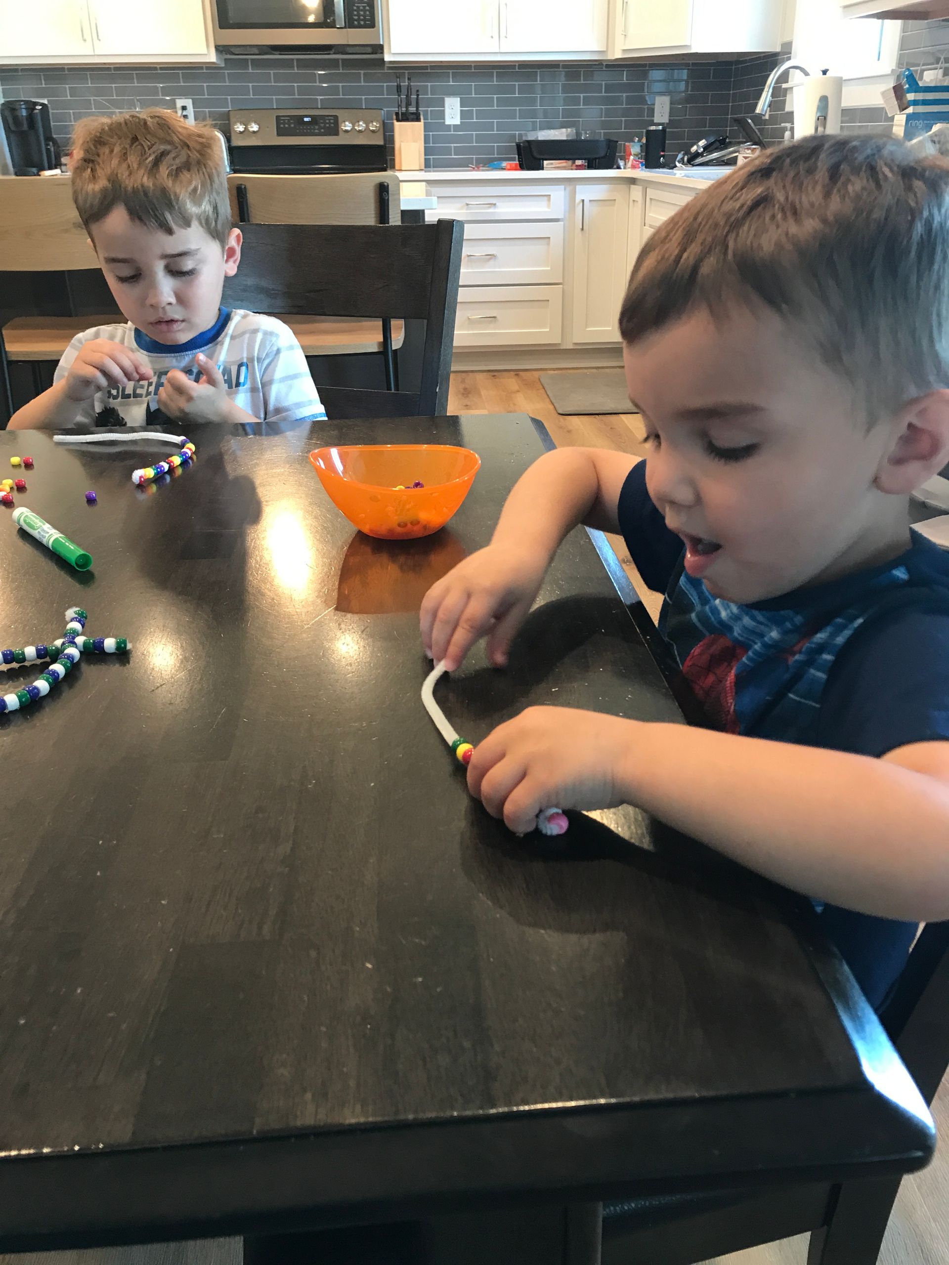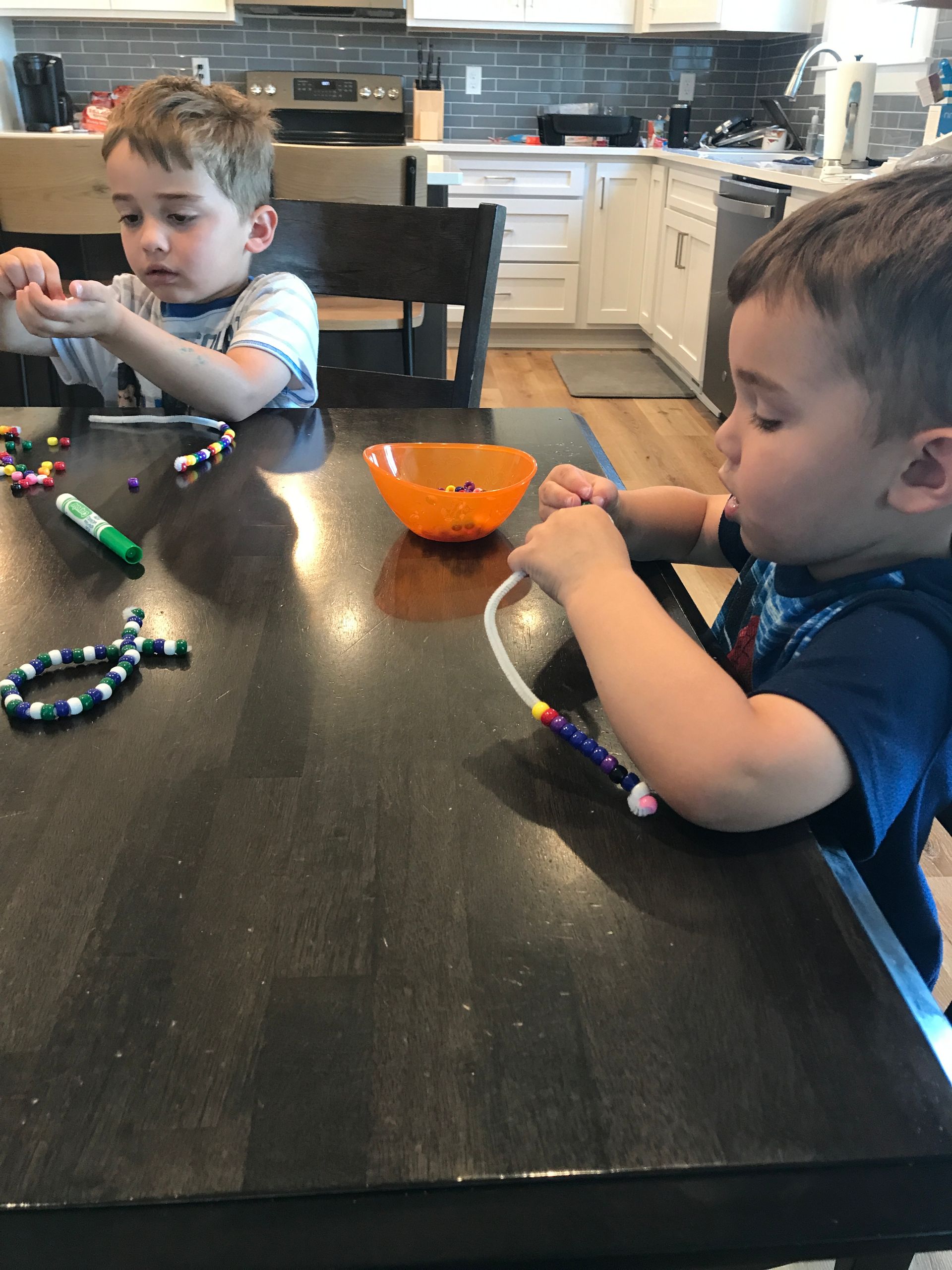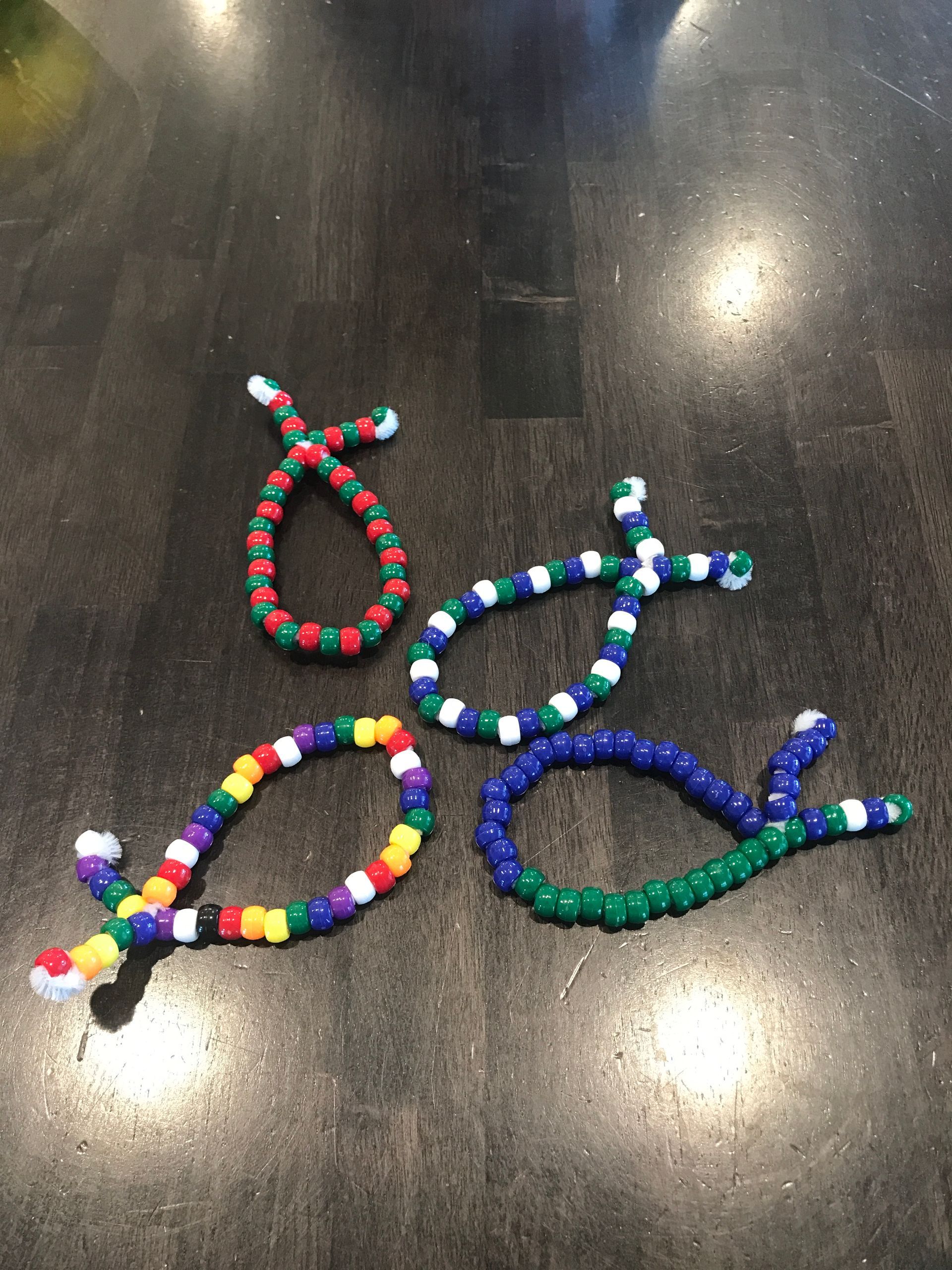 The boys and I made beaded fish and they had fun making them! They did better with this than I expected.