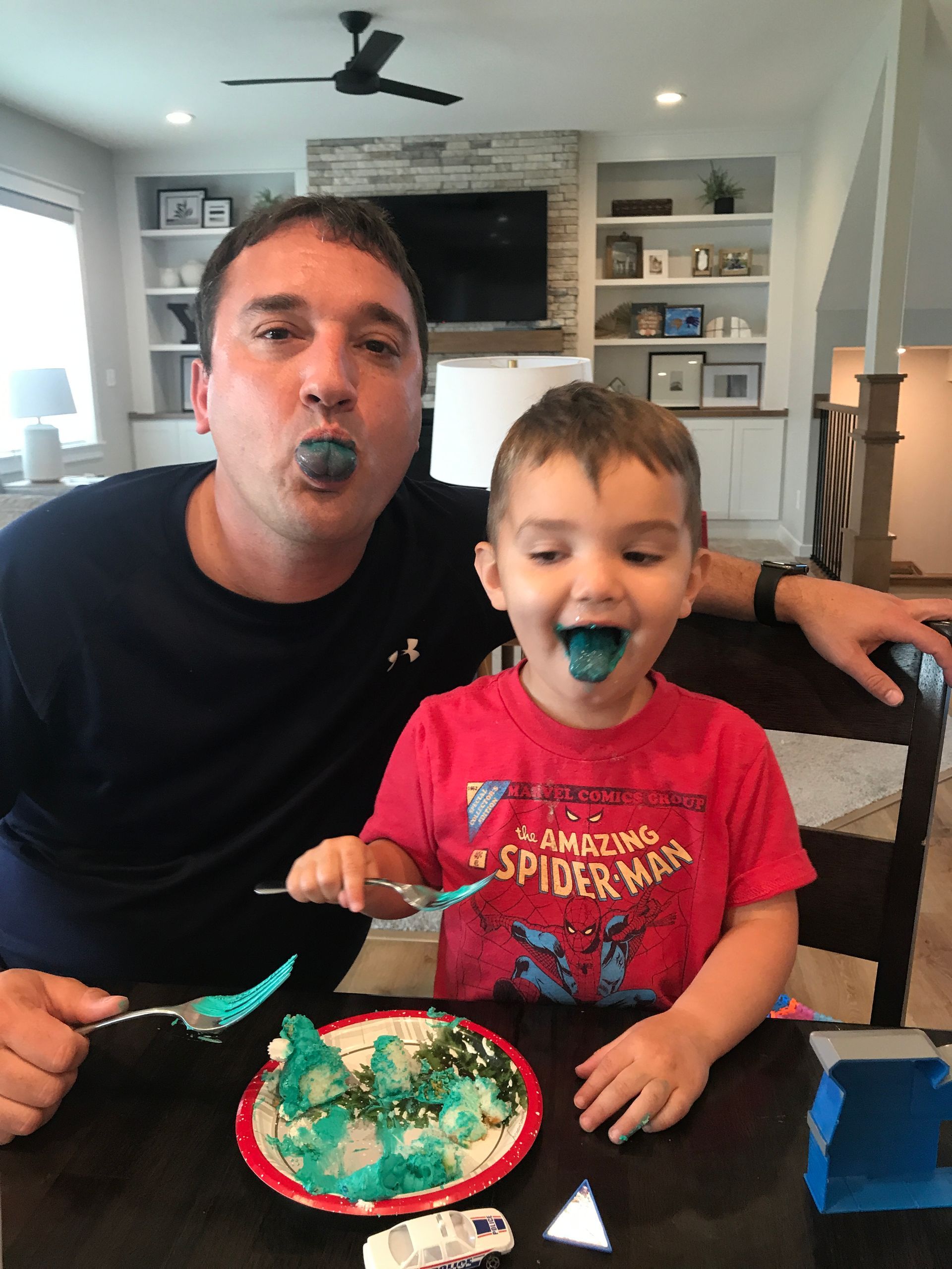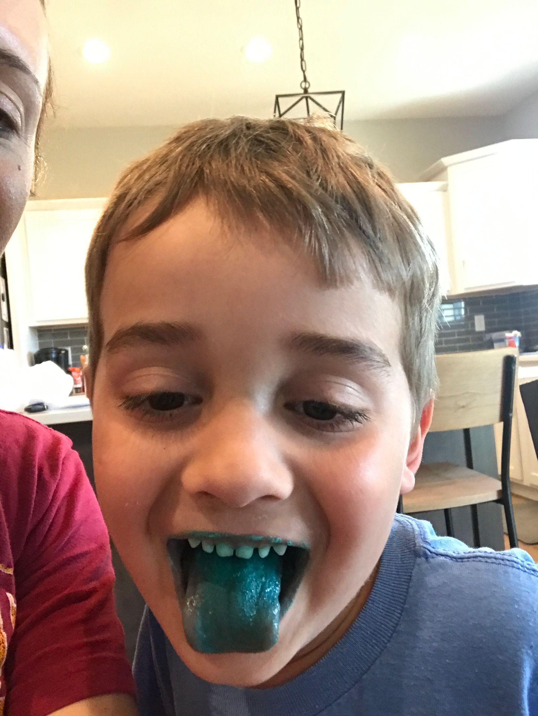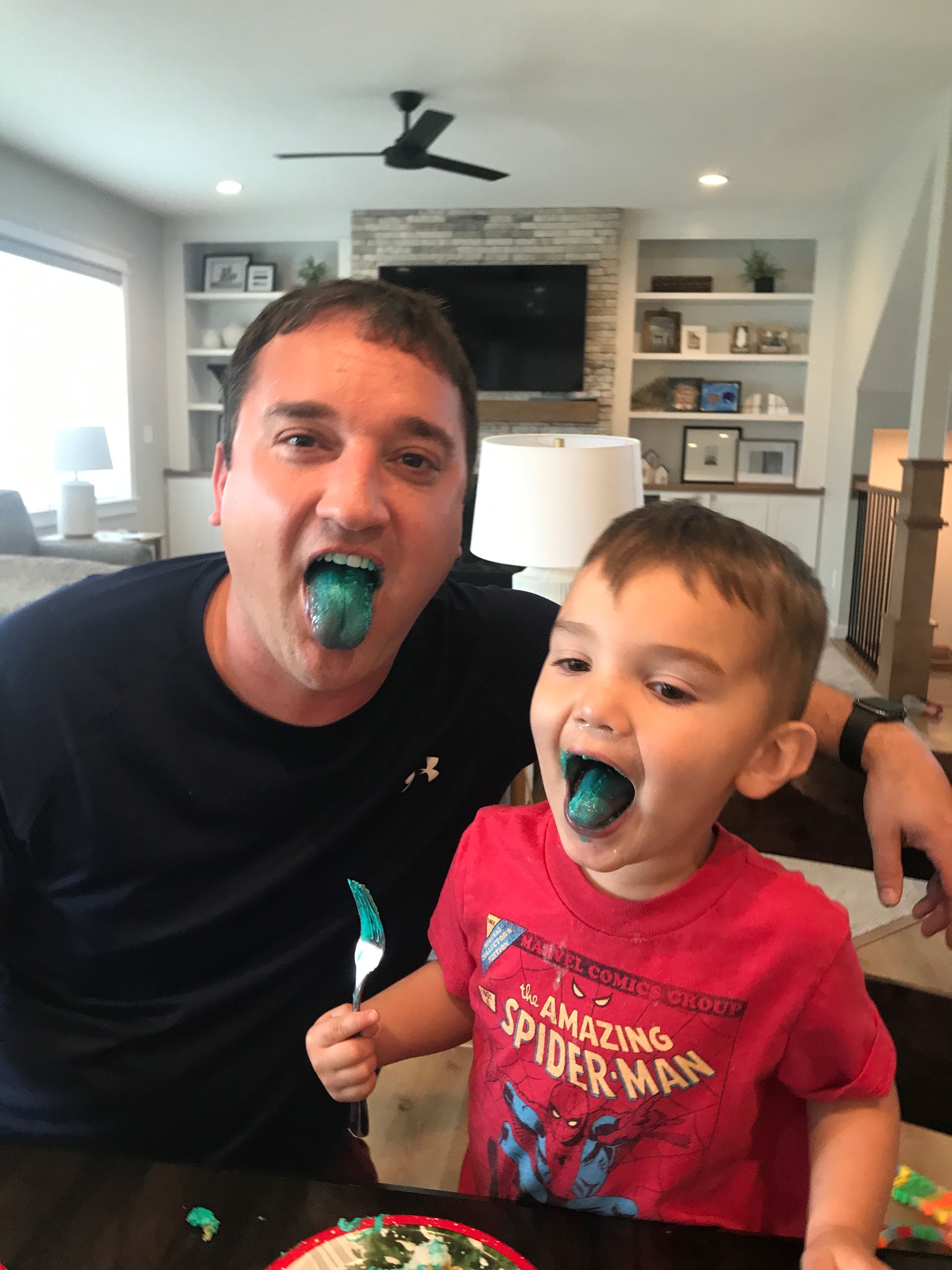 Nana gave us some left over cake and it turned a tongues blue!