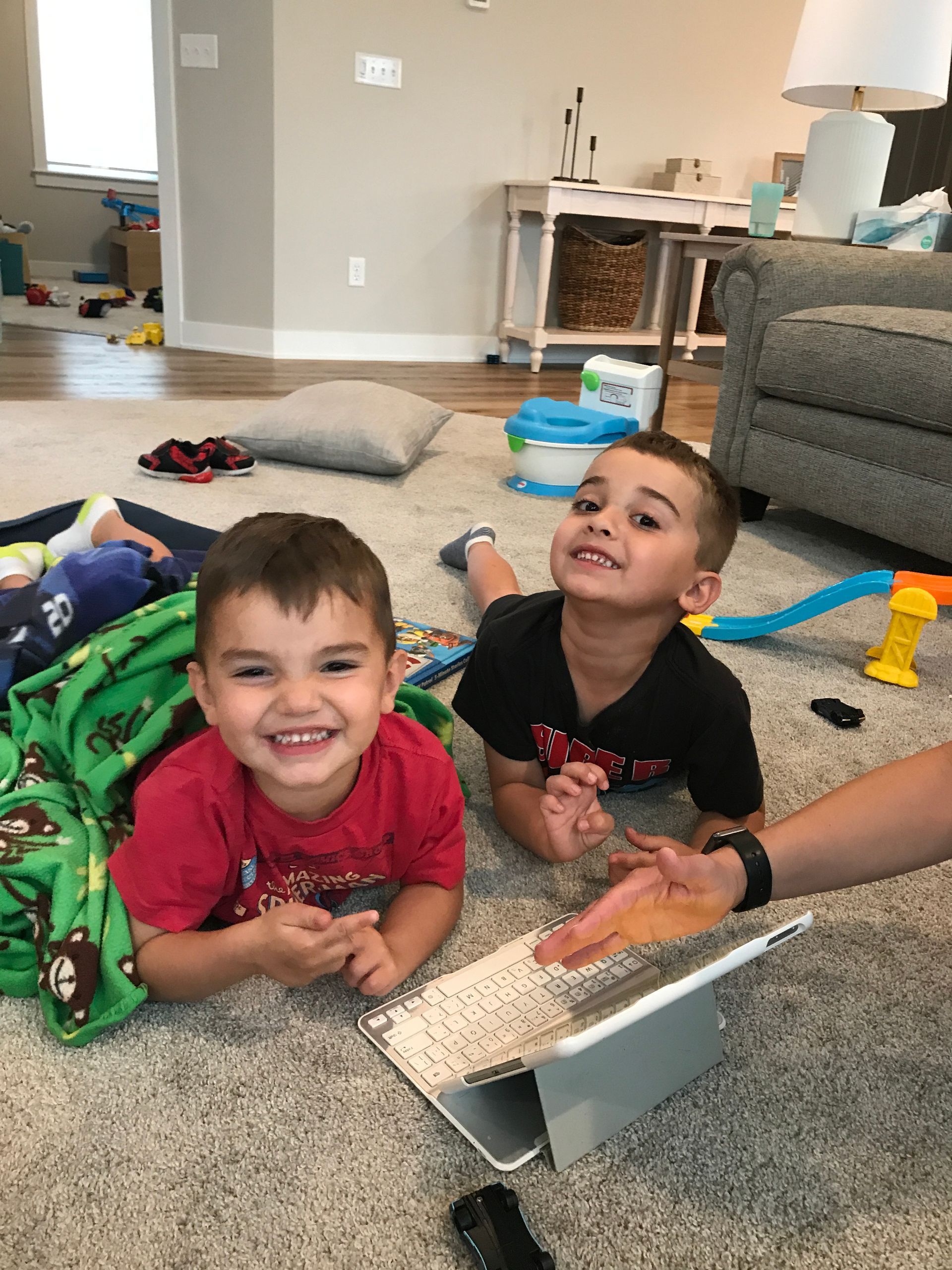 For a short moment the boys were playing nicely at Nana and Papa's house.