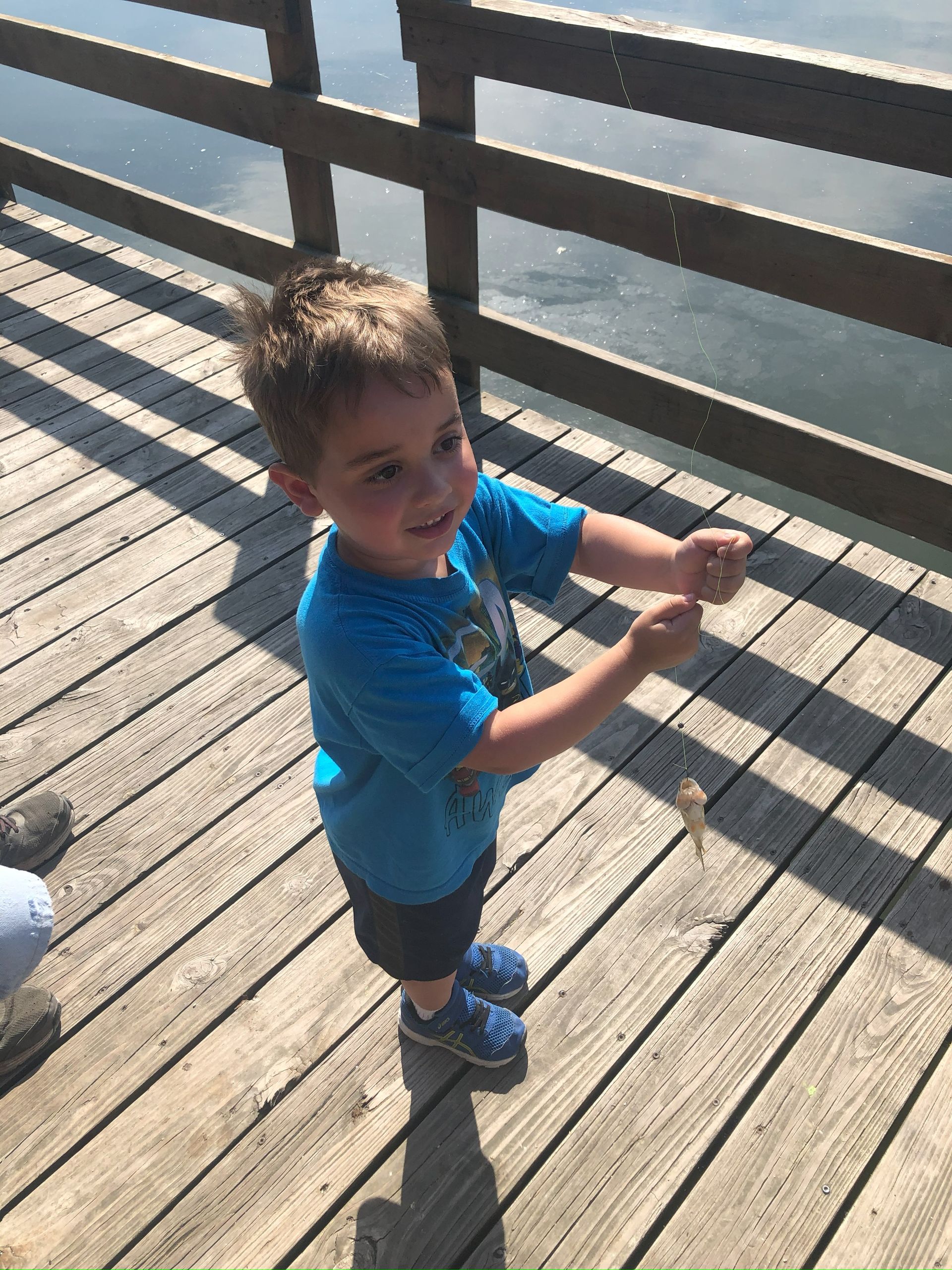 Grant went fishing with Grandma and Dad over the 4th of July weekend. He had a great time and caught a few fish!