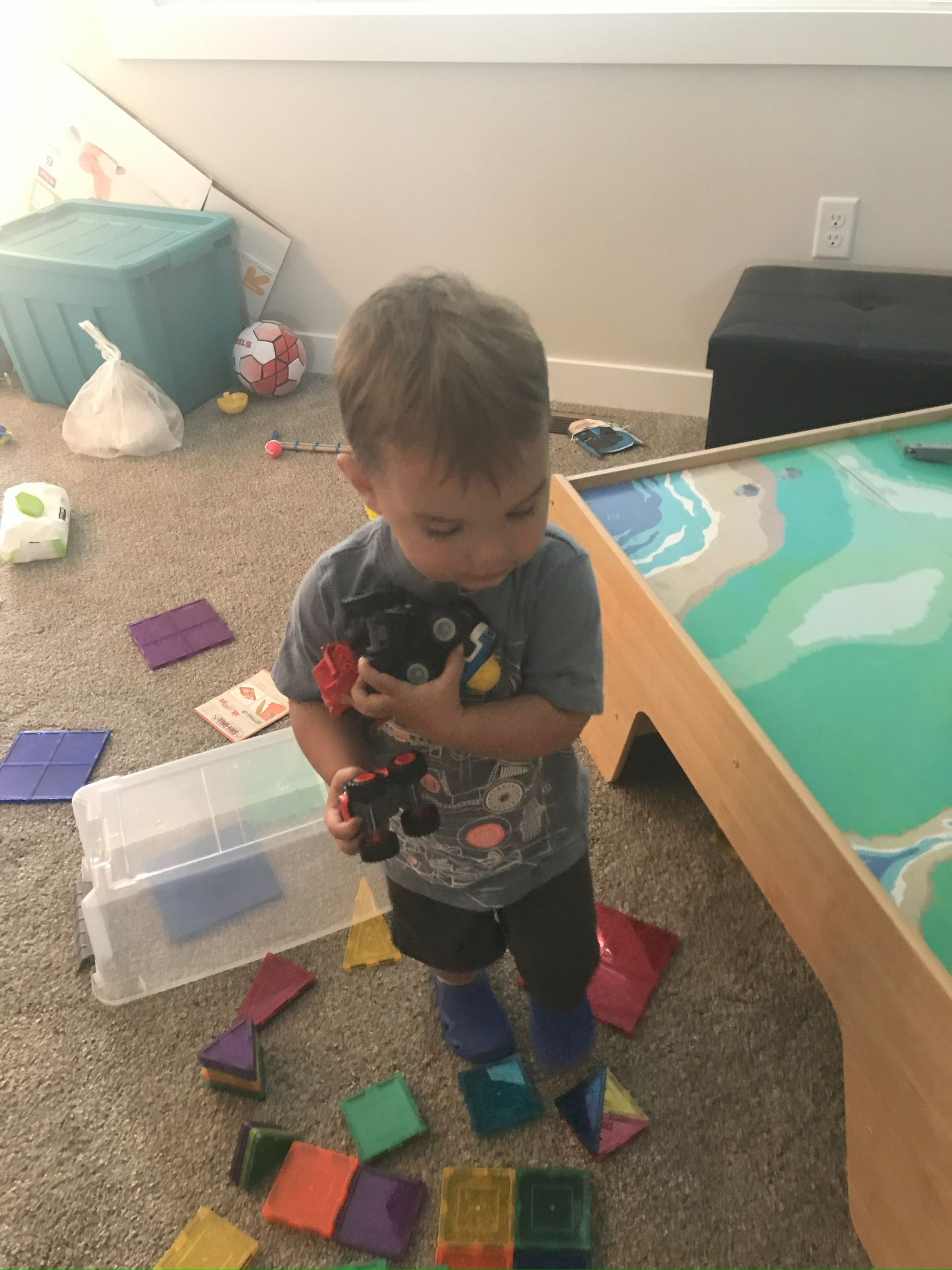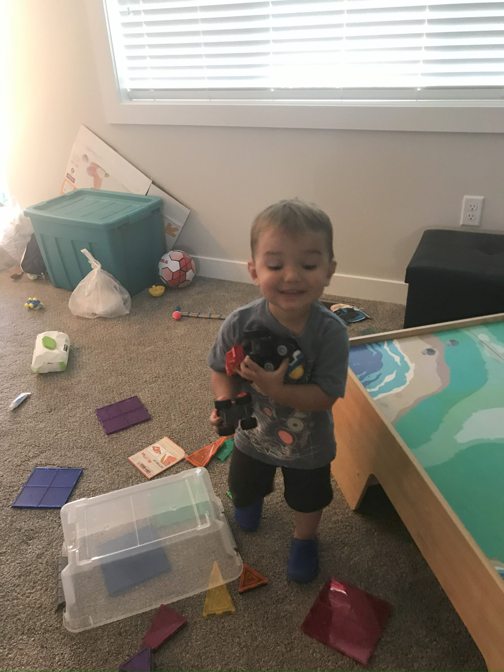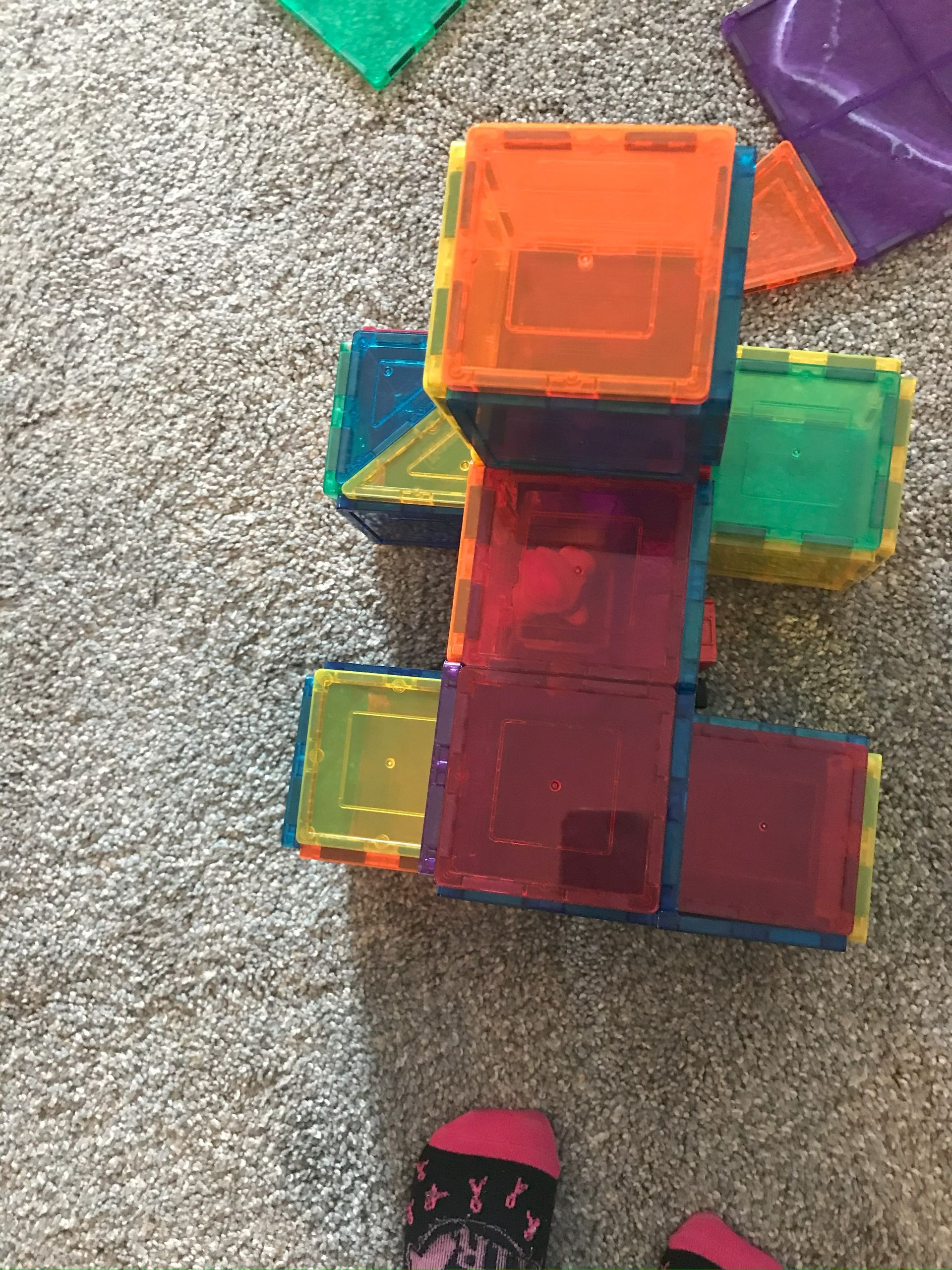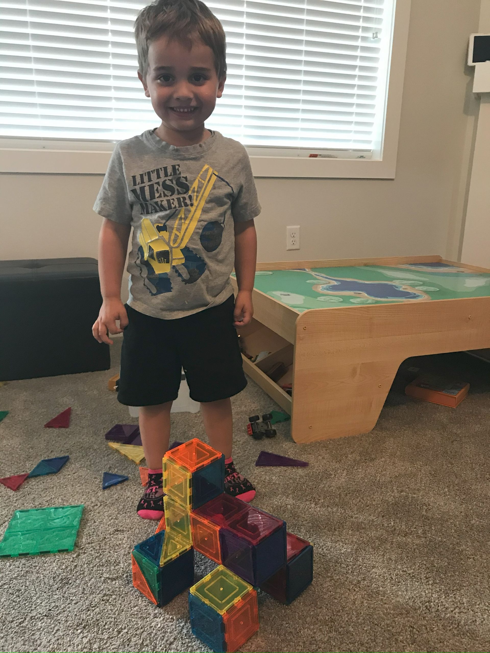 Grant made a monster truck out of magnetic tiles and he was SO proud of himself!