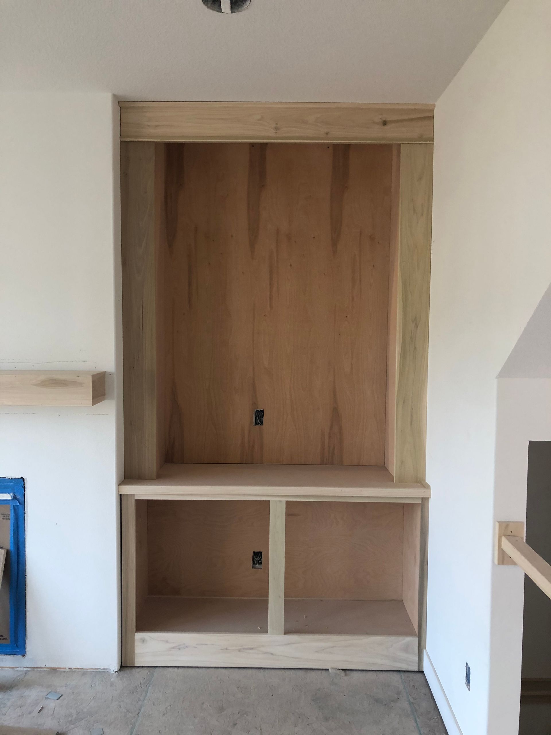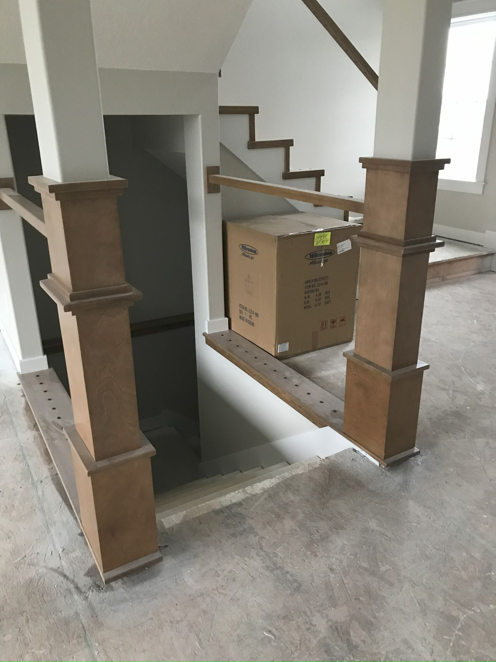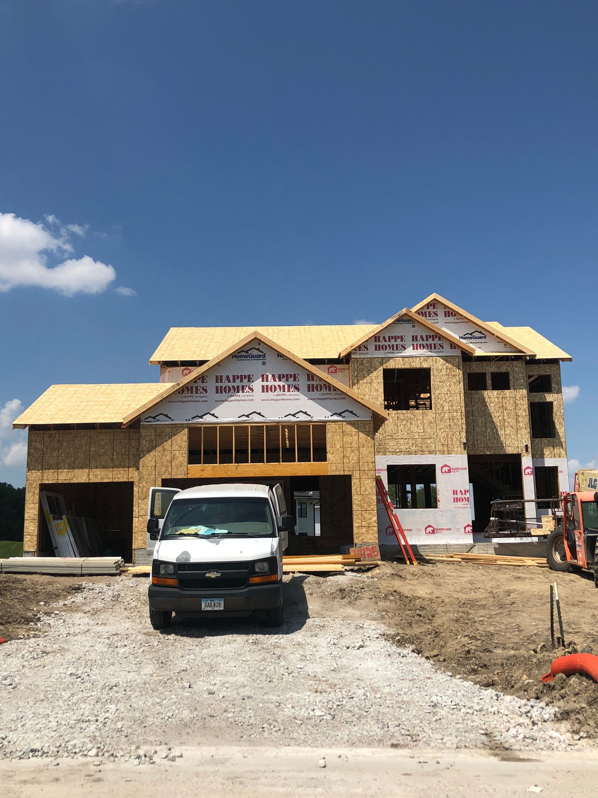 The house is getting closer to to being done! The bookshelves are being put in the wood around the stairs. That was put in by accident and we are so happy they did that because it looks so good! The house is getting sided and hopefully painted shortly after that. I took a few videos to send to my Grandma but its looking good so far!