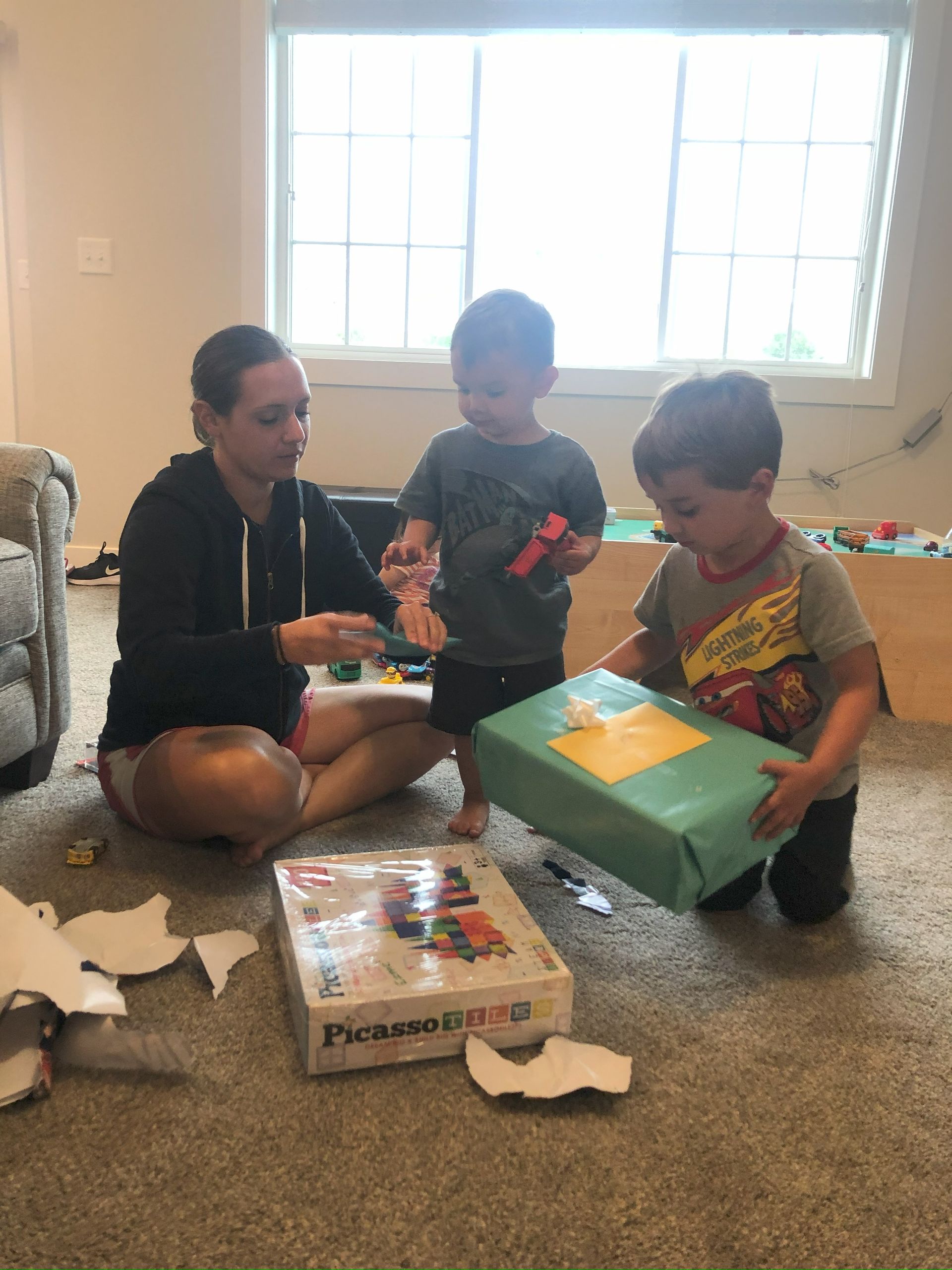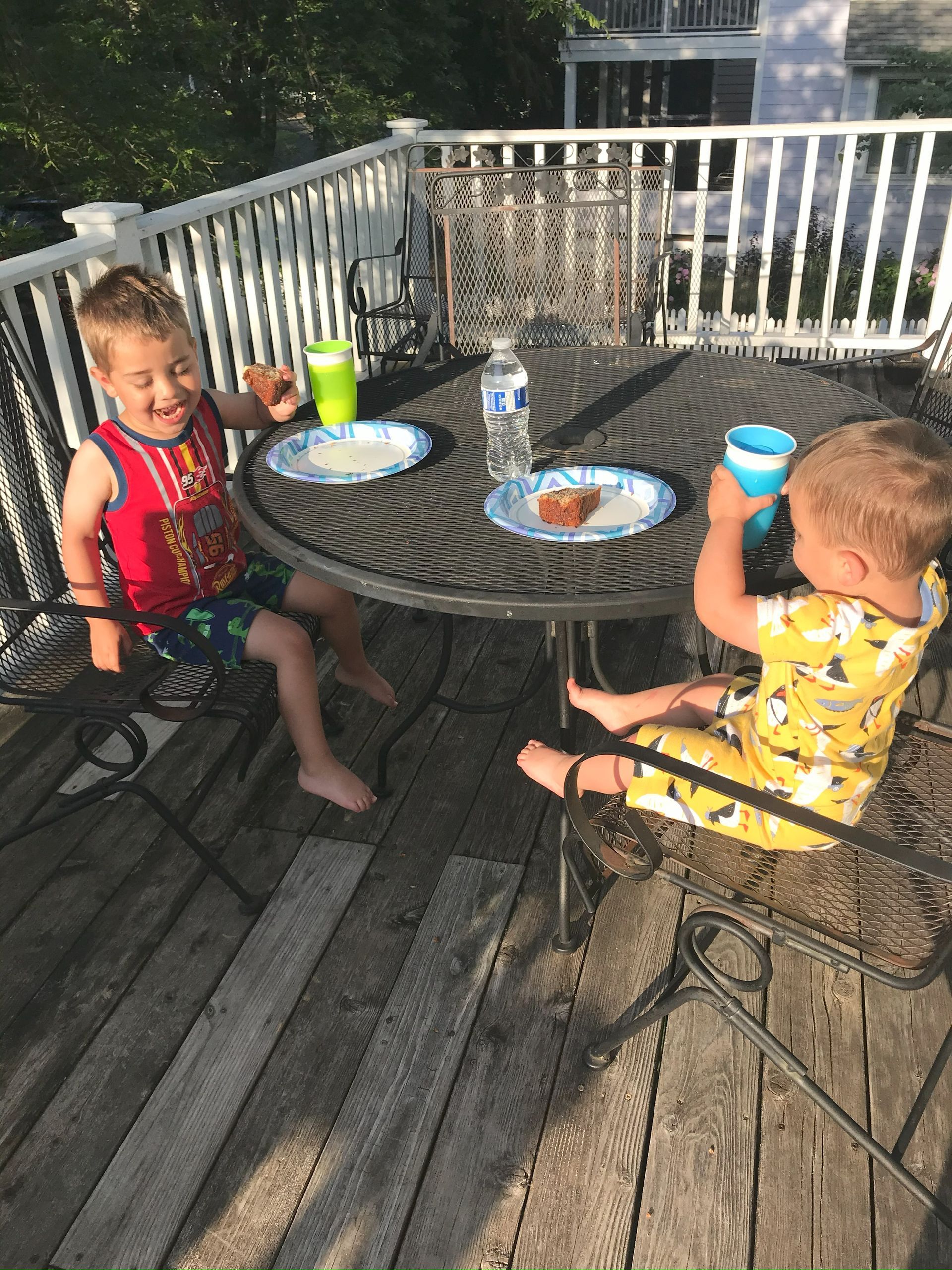 The boys were playing a game in the backyard and playing together well-ish. This lasted awhile and they thought it was a fun game!