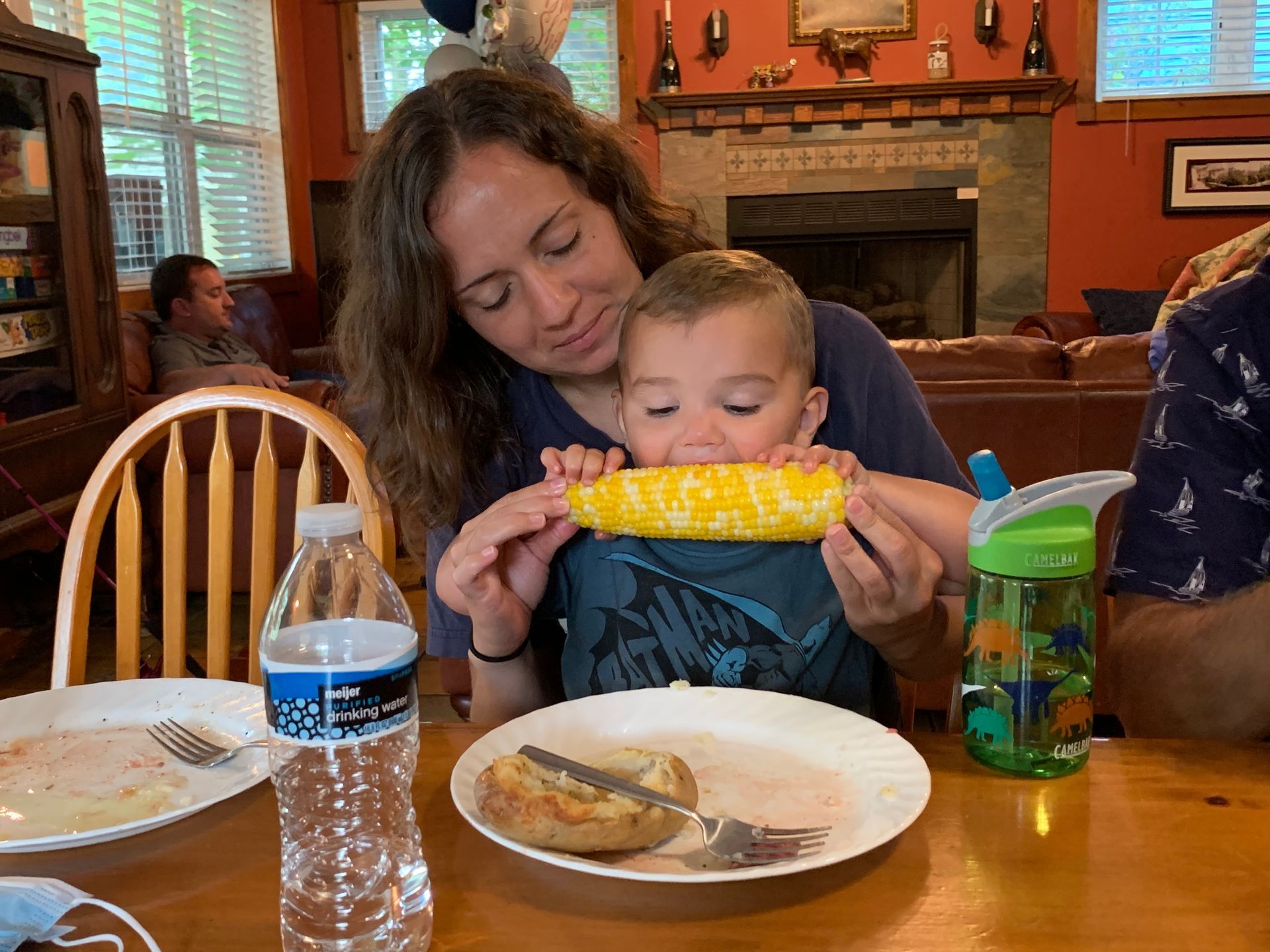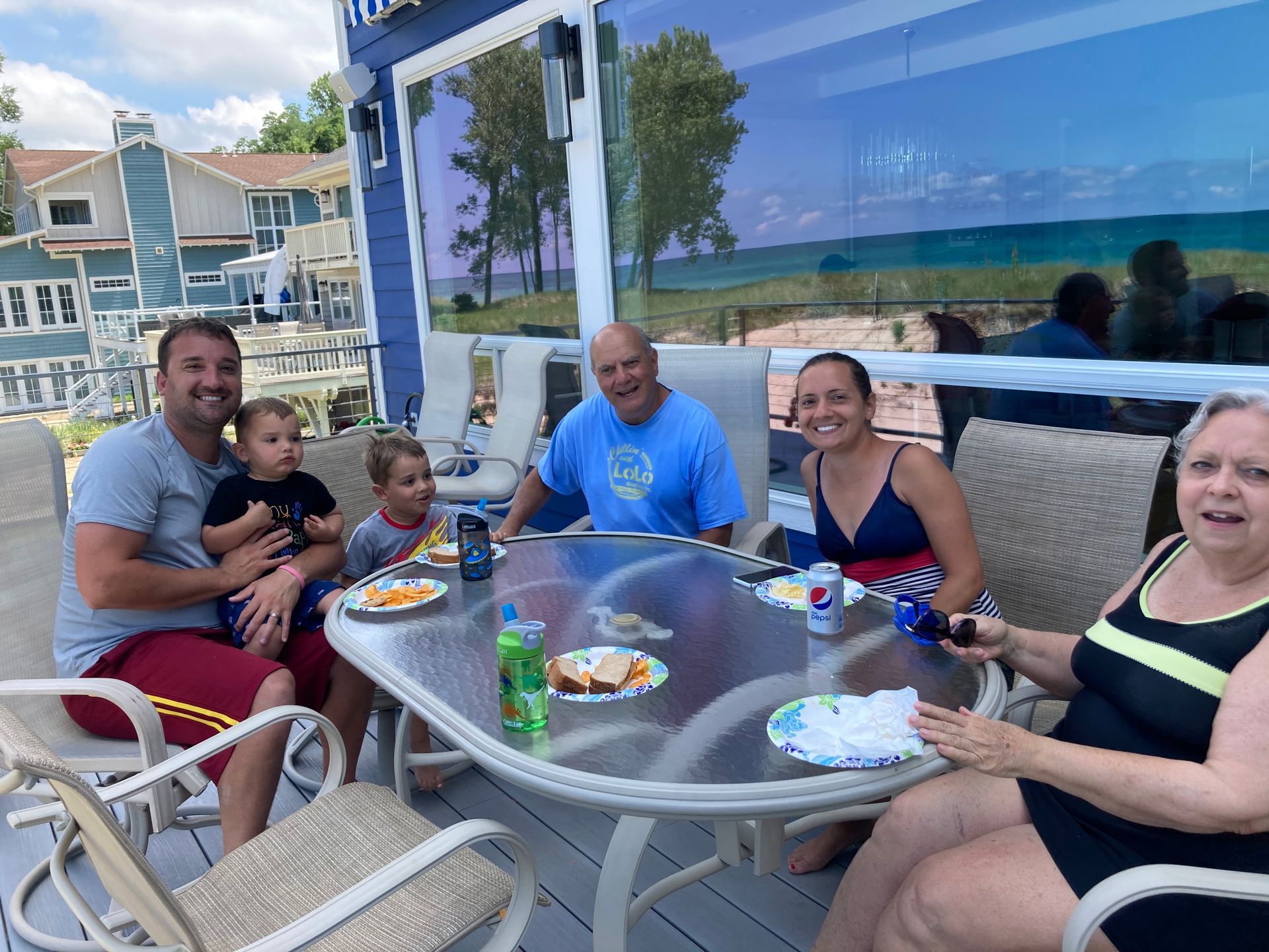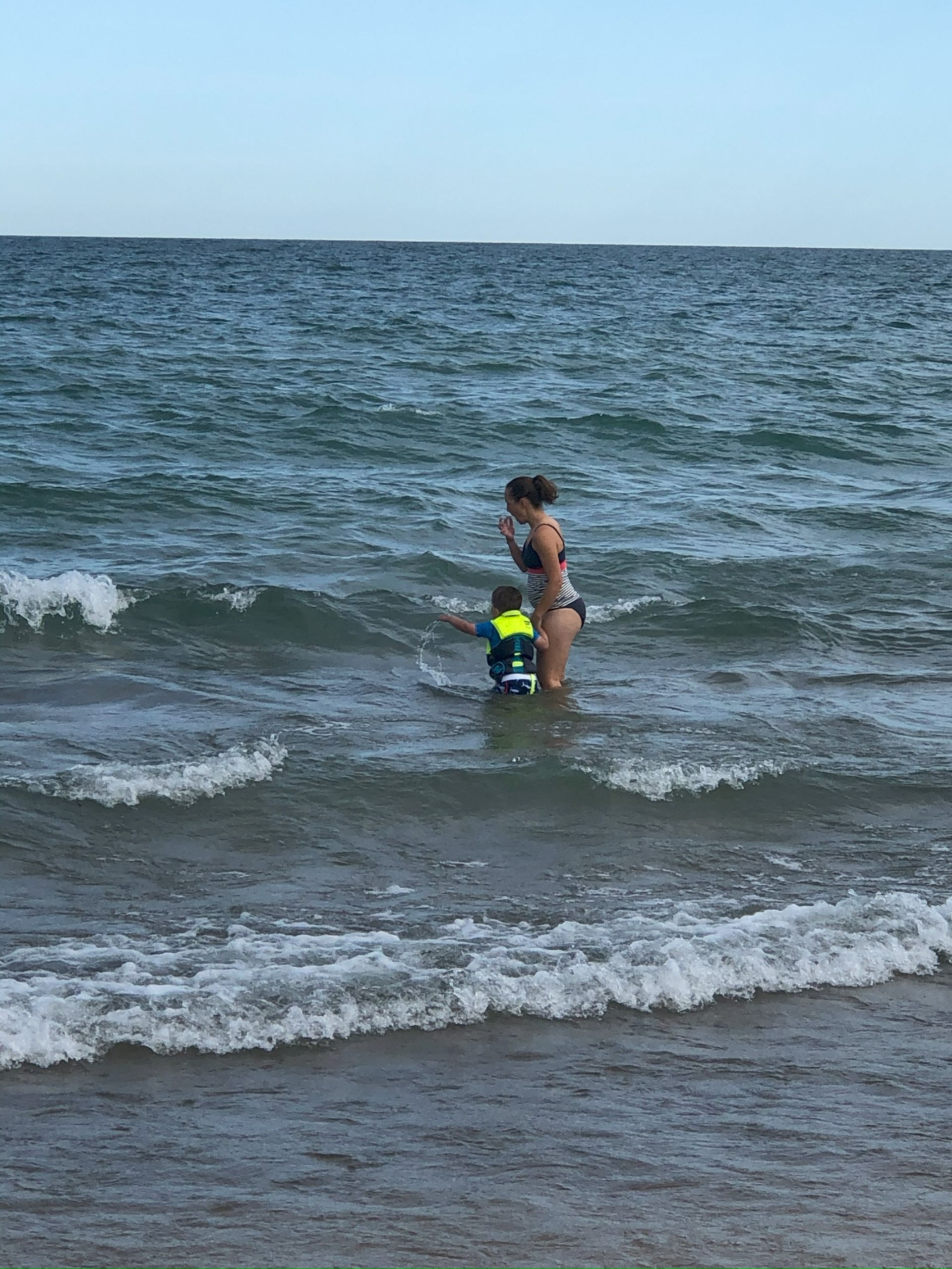 We made it to the big lake! That is what Grant calls Lake Michigan. It was a fun but exhausting week. We stayed at the bus spot which was nice to have our own space for naps and early wake ups. The weather was amazing though and we loved the early morning time at the beach. We had some lunches at Aunt Nicki's and the boys loved her "spicy chips" or BBQ chips and the name has stuck. They did really well on the car ride especially with the long drive. Our car was packed to the brim. Makenna played with Grant a lot which was nice to keep him entertained. Uncle Mit dug a hole with Grant also. Uncle Jeff took Grant fishing. He even caught a few fish! These boys are busy so we had to keep them active!