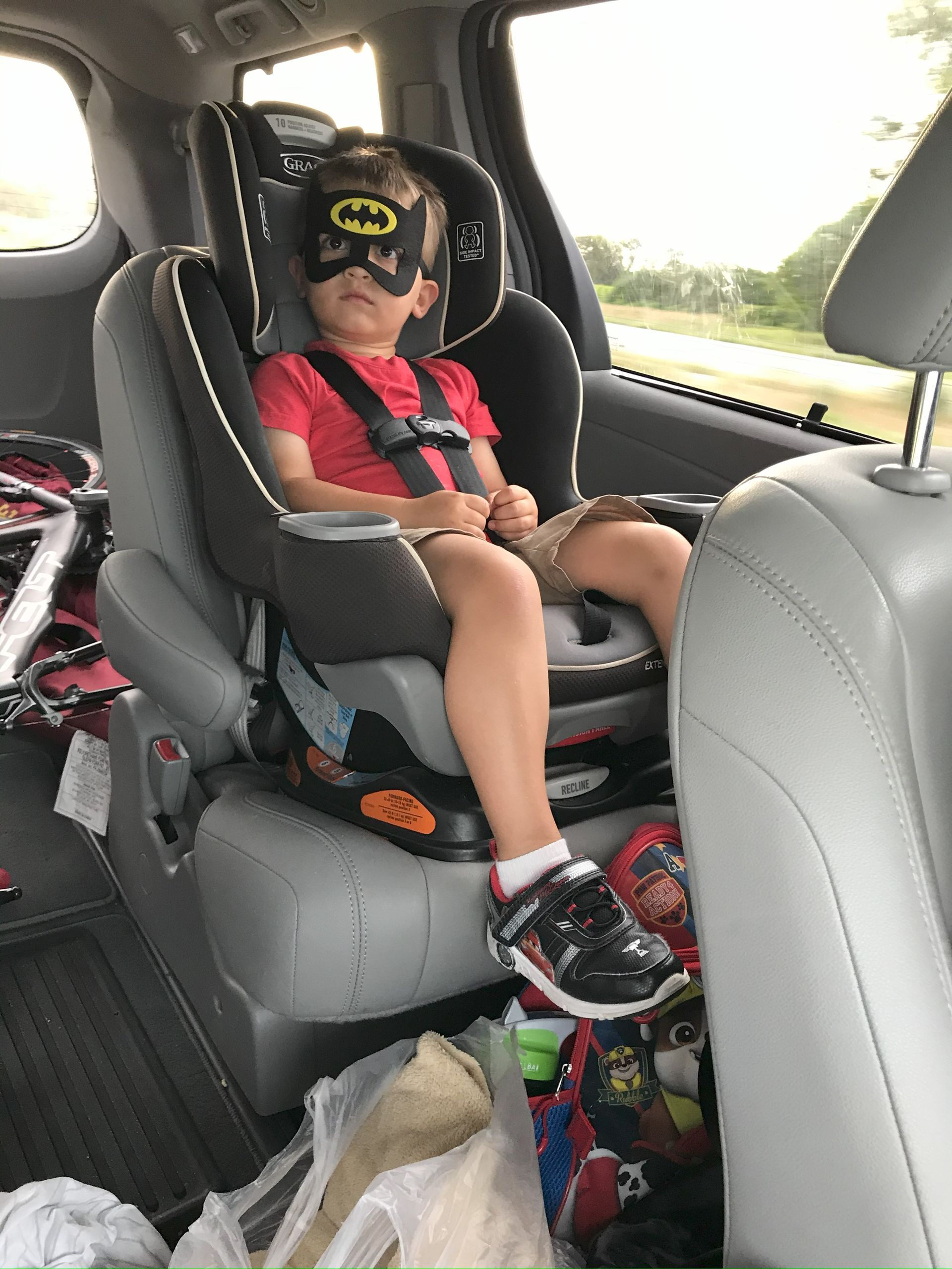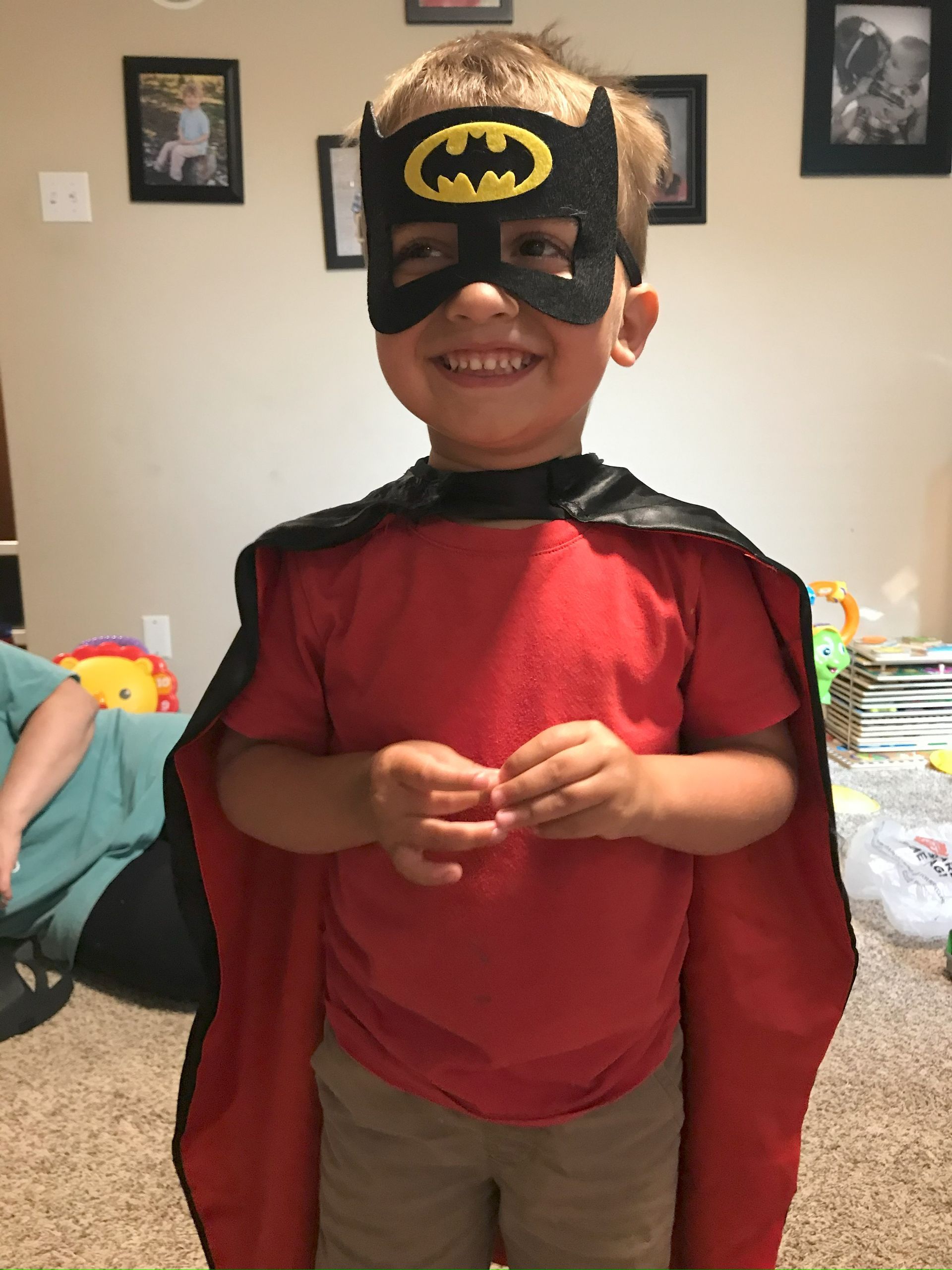 Grant found some Batman masks at Aunt Kellie's and loved them! She even let him take one home and he wore it in the car.