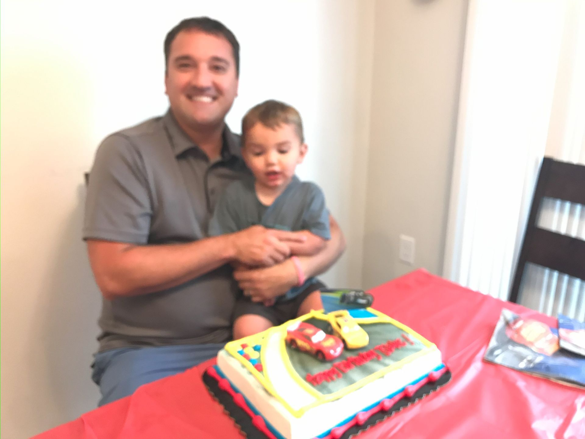 Blake gets 3 birthday parties this year! Since we are in our town house we split up the family celebrations. First was the Young family celebration and it was Lightening McQueen themed! We got out the bounce house for all of the cousins to jump on.