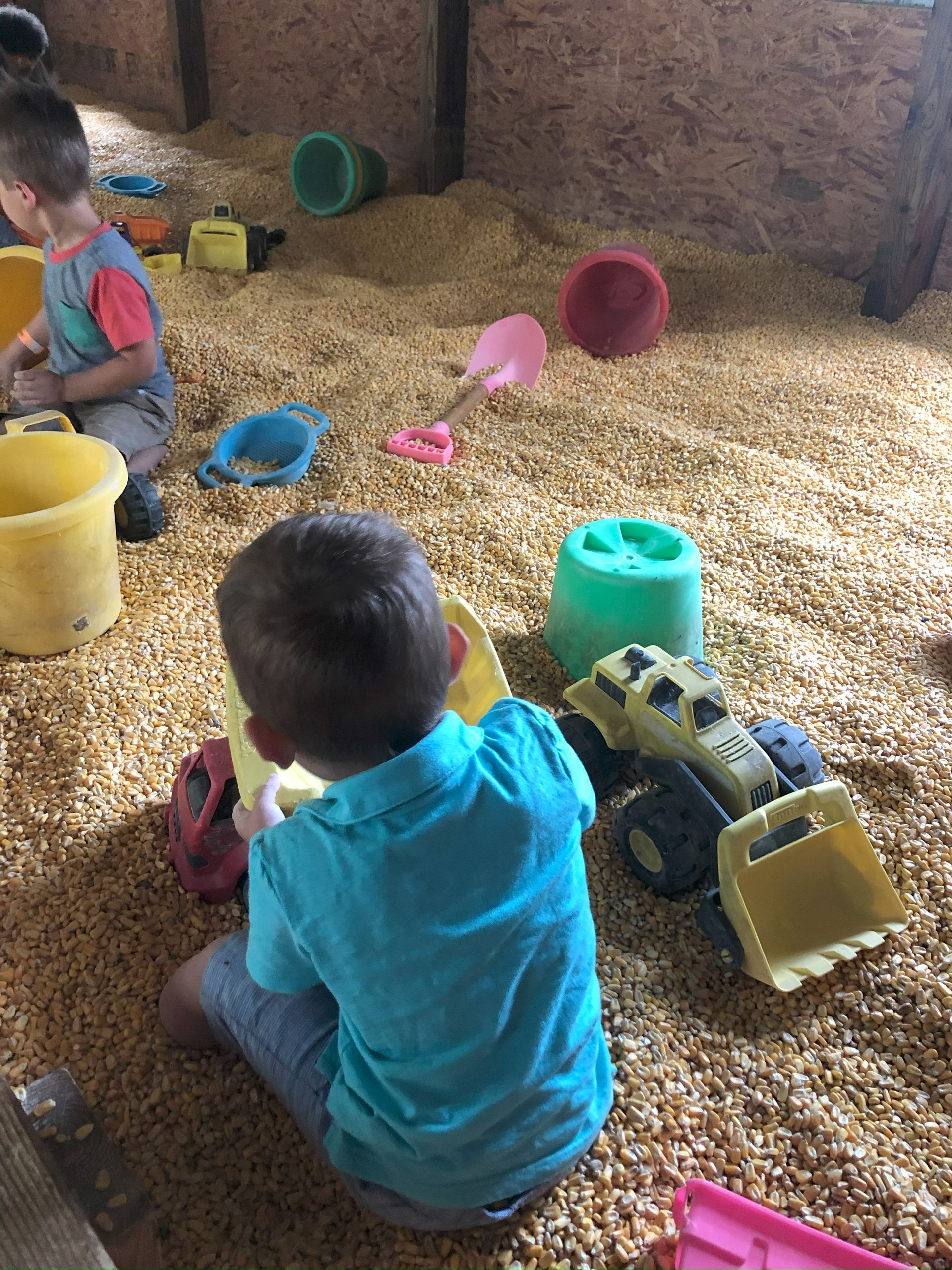 We took the boys to the pumpkin patch in September because it was so nice outside! The boys loved it! They got to feed some goats, so on a tub ride, play in some corn and jump on an inflatable. I would say it was a success!
